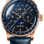- Four subdials: date at 3 o'clock, moon phase at 6 o'clock, day of the week at 9 o'clock, and month and leap year indicators at 12 o'clock.