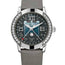 Preowned-3253-6044A-52B Blancpain This Ladies watch has 18K White Gold case. Fixed 18K White Gold bezel set with 26 diamonds. Grey with mother of pearl dial with silver-tone hands and Roman numeral hour markers. Dial Type: Analog. Month and Day of the Week Indicators located at 12 o'clock position. Moon Phase sub-dial located at 6 o'clock position Date Indication located on the outer rim of the dial. Blancpain Calibre 6753 automatic movement with a 100-hour power reserve. Grey satin strap with deployant buckle. Scratch resistant sapphire crystal. Transparent case back. Round case shape, case size: 34 mm, case thickness: 11.25 mm. Deployment clasp. Water resistant at 50 meters / 165 feet. Functions: full calendar, moon phase, date, day, hour, minute, second.