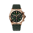RB0134101L1S1 Breitling This watch has a 42 mm 18k Red Gold case. Unidirectional 18k Red Gold bezel with ratcheted. 18K Red Gold crown. Green dial with three black cub-dials. Red gold-colored applied hour markers with luminescent coating. Red gold-colored hour hands with luminescent coating. Minute markers around the outer rim. Central second hand. The date window is located at the 6 o'clock position. This watch has three sub-dials chronograph : 60 seconds sub-dial at 9 o'clock, 30-minute sub-dial at 3 o'clock, 12-hour counter at 6 o'clock. The watch performs following functions: hours, minutes, seconds, date, chronograph. Self-winding mechanical movement is powered by a ?alibre 01 (Manufacture). 47 jewels. Power reserve approximately 70 hours. Case Thickness - 15.1 mm. Case back is transparent. Sapphire crystal protects front and back side of the watch. Green rubber strap with folding clasp buckle. This model is water-resistant up to 200 m.