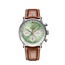 AB0139211L1P1 Breitling The Breitling Navitimer AB0139211L1P1 Men's Watch is a stylish and sophisticated timepiece from Breitling. The 41mm stainless steel case with bidirectional stainless steel bezel with a slide rule gives the watch a sleek and modern look. The green dial features silver colored sub-dials, gold-toned luminescent index and hour markers, and gold-colored luminous hour hands, which can be read easily both day and night. The chronograph function features three sub-dials: a 60-second sub-dial at 9 o'clock, a 30-minute sub-dial at 3 o'clock, and 12-hour counters at the 6 o'clock marker, providing an accurate measurement of elapsed time. The date window is located at the 6 o'clock position, keeping track of important dates easier. The self-winding mechanical movement is powered by a Calibre Breitling 01 (Manufacture) with 47 jewels and 28,800 v.p.h. provides precise and reliable timekeeping. The case is 13.6mm thick, and the front and back sides of the watch are protected by sapphire crystal, while the case back is transparent, allowing a view of the mechanism inside. The watch features functions of hours, minutes, seconds, date, and chronograph. The Breitling logo is located under the 12 o'clock marker. The gold brown alligator leather strap comes with a stainless steel folding buckle. The model is water-resistant up to 30m, making it suitable for everyday use.