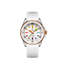 U17377211A1S1 Breitling This watch has a 36 mm Stainless steel case.  Unidirectional rotating 18K Red Gold and white ceramic bezel with dive scale. White inner bezel with minute scale. White dial. Colored luminous hour markers. Red gold-tone hour hands with colored luminescent coating. Central second hand. The watch performs following functions: hours, minutes, seconds. Self-winding mechanical movement is powered by a ?alibre 17. Power reserve approximately 38 hours. Case Thickness - 12.2 mm. Case back is solid. Sapphire crystal protects front side of the watch. White rubber strap with folding clasp buckle. This model is water-resistant up to 300 m.