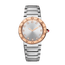 First launched in 1977, the timeless Bvlgari Bvlgari Lady watch in stainless steel and 18 kt rose gold embodies more than 40 years of bold creativity and distinctive style. Inspired by the curved inscriptions on ancient Roman coins, the iconic double logo engraved on the bezel and framing the silvered sunray dial expresses Bvlgari’s unparalleled ability to fuse culture and modernity into creations that go beyond time and trends. A precious touch is given by the brilliant-cut diamond indexes.