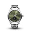 00.10924.08.93.22 Carl F. Bucherer The Carl F. Bucherer Manero Chronometer 00.10924.08.93.22 is a watch that effortlessly combines refinement and precision. Housed within a 40.6 mm stainless steel case with a steadfast fixed stainless steel bezel, this timepiece radiates enduring sophistication. The green dial, adorned with black counters, offers a unique and bold aesthetic. Rhodium-plated wedge index marks and hour hands grace the dial, ensuring both style and readability. A minute scale along the outer rim adds to the visual appeal. Enhancing its functionality, the watch features a discreet date window at the 3 o'clock position and a sub-dial displaying small seconds at the 6 o'clock position. It offers a versatile range of functions, including hours, minutes, seconds, and date, providing a comprehensive timekeeping experience. Powering this exceptional timepiece is a self-winding mechanical movement, Calibre CFB A2050, a testament to precision and innovation. With 33 jewels, the movement offers an impressive power reserve of approximately 55 hours, underscoring its reliability. With a case thickness of 11.2 mm, the watch is meticulously designed for both style and comfort. The transparent case back, protected by sapphire crystal, offers a captivating view of the intricate inner workings of the watch. Completing the ensemble is a stainless steel bracelet, secured with a folding clasp buckle, enhancing its modern and versatile appeal. Striking the perfect balance between style and practicality, this model boasts a water resistance of up to 30 meters, ensuring adaptability across various settings. Produced in a limited edition of only 188 pieces, this timepiece stands as a testament to exclusivity, captivating discerning aficionados of fine watches.