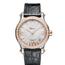278559-6003 Chopard The Chopard Happy Sport 278559-6003 is a digital innovation and luxurious design watch. This automatic ladies watch features a delicate 36mm 18K rose gold and stainless steel case, complete with a diamond bezel that adds a touch of glamour to its already stunning design. The silver-toned dial showcases an exquisite display of dancing diamonds, along with leaf-shaped, gold-plated hands, indexed Roman numeral hour markers, and a modern date indication at 4.30 o'clock, adding a digital essence to its timeless appeal. The black alligator leather strap, complete with a glossy finish and stainless steel pin buckle, provides a comfortable fit that perfectly complements the watch's luxury design. With water resistance up to 30 meters or 100 feet, this watch is built to last through all of life's adventures. For watch enthusiasts who appreciate advanced digital features and unique designs, the Chopard Happy Sport 278559-6003 is a true masterpiece that is worth adding to any collection.