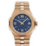 295363-5001 Chopard The Chopard Alpine Eagle Large Ethical 295363-5001 watch is a truly stunning and features a 41mm Ethical 18-K Rose gold case with a fixed Ethical 18-K Rose gold bezel. The blue dial is complemented with a guilloché pattern and applied rose gold-tone plated Roman numeral and index hour markers with luminous fill, where the Roman numerals appear at the 3, 6, 9, and 12 o'clock positions. The rose gold-tone hands with luminous fill further enhance the overall elegance of this watch, while the date window is located between the 4 and 5 o'clock positions. The watch performs various functions such as hours, minutes, seconds, and date with a self-winding mechanical movement powered by a Calibre 01.01-C, containing 31 jewels and beating at 28,800 vph. The watch is equipped with a scratch-resistant sapphire crystal and a transparent case back, and has a power reserve of approximately 60 hours. The Ethical 18-K Rose gold bracelet and folding clasp buckle add to the overall sophistication of this watch, and this model is also water-resistant up to 100 meters, making it a reliable choice for various activities. It is truly a breathtaking piece that any watch enthusiast would appreciate.