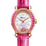 275362-5003 Chopard. The Chopard Happy Sport Oval Ethical 275362-5003 is an exquisite women's watch designed with a 31.31 mm X 29 mm Ethical Rose Gold case that showcases a fixed bezel set with Pink Sapphires. The silver-tone oval-shaped dial features a guilloche center and a Chopard logo detail with seven floating pink sapphires and diamonds, weighing a total of +/-0.05 carats. The dial also has polished rose gold-tone hands and applied index hour markers. Applied polished Roman numerals appear at the 6 and 12 o'clock positions, and minute markers surround an inner ring for precise timekeeping. This watch's self-winding mechanical movement is powered by a Chopard calibre 09.01-C, which consists of 27 jewels and performs three functions, including hours, minutes, and seconds. The watch's power reserve is approximately 42 hours, ensuring that it will keep accurate time for an extended period. The Chopard Happy Sport Oval Ethical 275362-5003 watch is equipped with a scratch-resistant sapphire crystal that protects the dial and maintains its pristine condition. The polished ethical rose gold crown set with a single sapphire cabochon adds to the watch's luxurious design, and the transparent case back allows you to view the movement. The oval case shape of this watch makes it unique and eye-catching, and the pink alligator leather strap with a traditional buckle adds to its overall elegance. The watch is water-resistant up to 30 meters, making it suitable for everyday wear, but not for swimming or diving. Overall, the Chopard Happy Sport Oval Ethical 275362-5003 watch is a stunning timepiece that will complement any elegant outfit and add a touch of luxury to your wrist.