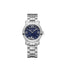 278573-3017 Chopard. The Chopard Happy Sport 278573-3017 watch features a 30 mm stainless steel case with a fixed stainless steel bezel . The blue-toned dial has a guilloche center and silver-tone hour markers, which are complemented by leaf-shaped hands and Roman numeral hour markers. The dial also features five dancing diamonds, adding a touch of elegance to the watch. The watch performs basic timekeeping functions such as hours, minutes, and seconds, and is powered by a self-winding mechanical movement containing 27 jewels, with a power reserve of approximately 42 hours. The scratch-resistant sapphire crystal adds durability to the watch, and the case back is transparent, providing visibility of its inner workings. The watch has a case thickness of 11.23 mm and is paired with a stainless steel bracelet and folding clasp buckle, which is both comfortable and stylish. The watch is also water-resistant up to 30 meters or 3 ATM, making it suitable for daily wear. Overall, the Chopard Happy Sport 278573-3017 is a beautiful and functional watch that combines classic elegance with modern design elements, adding a glamorous touch to any outfit.