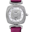 The white mother-of-pearl dial is decorated with fine guilloché and 12 brilliant-cut diamond hour markers. 118 brilliant-cut diamonds are set in a cushion shape in the center of the dial, while the case is set with 308 brilliant-cut diamonds. White gold leaf-shaped hour hands. The date window is located at the 6 o'clock position. This watch is powered by a Calibre 03-01 quartz movement and boasts a power reserve of approximately 48 months on a fully charged battery, ensuring precision and reliability.