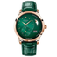 1-90-02-23-35-01 Glashutte Original The Glashutte Original Pano Matic Lunar 1-90-02-23-35-01 is a stunning timepiece from Glashutte Original. It features a 40 mm polished red gold case with a fixed polished red gold bezel, exuding a sense of luxury and sophistication. The varnish green-black dial with a dégradé effect adds a touch of uniqueness to the watch's design. The luminous gold-tone hands and applied polished rose gold-tone hour markers provide excellent legibility against the dial. The minute, seconds, and moon phase indicators are finely printed, adding to the watch's visual appeal. At the 7 o'clock position, there is a recessed small seconds dial with markers and a gold-tone hand. The Panorama Date is located at the 4 o'clock position, enhancing the watch's functionality. The moon phase display is positioned at the 2 o'clock position, adding a celestial touch to the timepiece. The brand's signature can be found at the 12 o'clock position. Powering the watch is a self-winding mechanical movement, the Calibre 90-02, which provides a power reserve of approximately 42 hours. The case has a thickness of 12.7 mm and features a transparent case back, allowing a view of the intricate movement. Both the front and back sides of the watch are protected by sapphire crystal, ensuring durability and scratch resistance. The watch offers various functions, including hours, minutes, small seconds, moon phase, and date, making it a versatile and practical timepiece. It comes with a green Louisiana alligator leather strap with a clasp buckle, providing a comfortable and secure fit. In summary, the Glashutte Original Pano Matic Lunar 1-90-02-23-35-01 is a remarkable watch that combines the beauty of red gold with intricate design details. With its captivating dial, functional features, and elegant finishing, it is a timepiece that will undoubtedly make a statement on the wrist of any watch enthusiast.