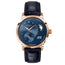 1-90-02-11-35-61 Glashutte Original The Glashutte Original Pano Matic Lunar 1-90-02-11-35-61 is a stunning timepiece with a 40 mm polished red gold case and a fixed polished red gold bezel. It features a captivating galvanized blue dial adorned with luminous gold-tone hands and applied polished rose gold-tone hour markers. The dial also includes finely printed minute, seconds, and moon phase indicators, adding to its aesthetic appeal and functionality. The watch boasts a recessed small seconds dial with markers and a gold-tone hand located at 7 o'clock, while the Panorama Date with a detection aperture is positioned at 4 o'clock for easy readability. The moon phase display, showcasing the celestial cycle, is elegantly presented at the 2 o'clock position. At the 12 o'clock position, the watch proudly bears the brand's signature, indicating its authenticity and craftsmanship. Powering the watch is a self-winding mechanical movement, specifically the Calibre 90-02, which provides a power reserve of approximately 42 hours. With a case thickness of 12.7 mm, the watch strikes a balance between elegance and durability. The transparent case back allows for a view of the intricate movement, while the sapphire crystal protects the front and back sides, ensuring resistance to scratches and ensuring longevity. In terms of functionality, the watch offers hours, minutes, small seconds, moon phase, and date indications, catering to everyday usability. It is presented with a blue Louisiana alligator leather strap, featuring a fold fastener buckle for secure and comfortable wearing. Additionally, the watch is water-resistant up to 50 meters, making it suitable for everyday wear and some water-related activities. The Glashutte Original Pano Matic Lunar 1-90-02-11-35-61 showcases a harmonious blend of red gold, a captivating blue dial, and exquisite complications. Its luminous accents, practical features, and attention to detail make it a sophisticated choice for watch enthusiasts who appreciate fine craftsmanship and distinctive design.