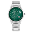 1-90-02-13-32-70 Glashutte  This Watch comes with 40 mm Stainless steel case. Fixed Stainless steel bezel. Varnish green dial. Off-center hour and minute display. Silvery hour markers and hour hands. Sub-dial of small seconds is located at 6 o’clock position.  Moon phase indicator is located at 2 o'clock position. Large double window for displaying the date at 4 o'clock. The watch performs following functions: hours, minutes, seconds, date, moon phase. Self-winding mechanical movement is powered by a ?alibre 90-02.  Power reserve approximately 42 hours. Case Thickness - 12.7 mm. Case back is transparent. Sapphire crystal protects front and back side of the watch. Stainless steel bracelet with folding buckle. This model is water-resistant up to 50 m.