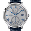 1-58-08-01-04-61 Glashutte This Witch comes with 42 mm 18K White Gold case. Fixed 18K White Gold bezel. Silvery dial with blue hour hands. Blue Roman numerals. Minute markers in the form of railway tracks around the outer rim. Large double window for displaying the date at 3 o'clock. Sub-dial of small seconds is located at 6 o’clock position. Power reserve indicator with day/night function is located at the 12 o'clock position. The watch performs following functions: hours, minutes, seconds,chronometer. Manual winding movement is powered by a ?alibre 58-08. Power reserve approximately 44 hours. Case Thickness - 11.4 mm. Case back is transparent. Sapphire crystal protects front side and back of the watch. Blue alligator leather strap with folding clasp buckle. This model is water-resistant up to 50 m.