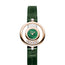 209415-5002 Chopard. The Chopard Happy Diamonds Icons 209415-5002 watch features a 25.8mm ethical 18K rose gold case with a fixed ethical 18K rose gold bezel. The watch has five diamonds floating between two sapphire crystals, with an additional two diamonds placed on the case fastening to the strap, totaling 0.4 carats. The green textured mother of pearl dial has rose gold hands and the Chopard logo located below the 12 o'clock position. The watch performs basic timekeeping functions such as hours and minutes, and is powered by a quartz movement containing 5 jewels. The scratch-resistant sapphire crystal adds durability to the watch, and the case back is solid. The round case shape is paired with a green alligator leather strap that comes with an ethical 18K rose gold tang buckle, adding a touch of luxury to the watch. The watch is also water-resistant up to 30 meters or 3 ATM, making it suitable for daily wear. Overall, the Chopard Happy Diamonds Icons 209415-5002 watch is a luxurious and unique timepiece that is perfect for those who appreciate exquisite craftsmanship and design. The floating diamonds add a touch of sophistication to the watch, while the green mother of pearl dial and alligator leather strap create a striking and stylish look.
