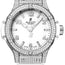 361.SE.2010.RW.1704 Hublot The Hublot Big Bang 361.SE.2010.RW.1704 Ladies watch is a luxurious timepiece that features a 38mm stainless steel case with a stunning 194 diamond set on the case. The fixed bezel of the watch is also set with 126 diamonds, adding to the overall elegance of the timepiece. The watch has a white dial with gold-tone hands that are easy to read and complement the diamond-encrusted bezel. The front side of the watch is protected by a scratch-resistant sapphire crystal, ensuring that the watch face remains clear and unscathed. The watch has a white rubber strap with a fold-over buckle that provides a comfortable and secure fit. The quartz movement ensures that the watch keeps accurate time, while its water-resistant capability up to 100m/300ft makes it suitable for swimming and snorkeling, but not for diving. Overall, the Hublot Big Bang 361.SE.2010.RW.1704 is a high-end ladies watch that is both stylish and functional. Its luxurious design and premium features make it an excellent choice for those who appreciate the finer things in life.