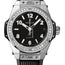465.SX.1170.RX.1204 Hublot The Hublot Big Bang 465.SX.1170.RX.1204 is a luxurious men's watch with a stainless steel case measuring 39mm in diameter. The fixed bezel of the watch is adorned with 42 diamonds, which adds to its aesthetic appeal. The watch features a black dial with luminous silver-tone hands, Arabic numerals, and index hour marks, which make it easy to read time even in low light conditions. The date window of the watch is located at the 3 o'clock position, adding to its functionality. The watch is powered by an automatic movement, the Hublot Caliber HUB1710, which beats at 28,800 vibrations per hour and is composed of 185 parts and contains 27 jewels. The watch has an approximate power reserve of 50 hours, which means it can keep running for two days without winding. The watch is fitted with sapphire crystal glass, which is known for its scratch-resistant properties. The black rubber strap of the watch comes with a folding clasp, making it easy to wear and take off. The watch is water-resistant up to 100m / 330ft, which means it can withstand water splashes, rain, and even swimming. Overall, the Hublot Big Bang 465.SX.1170.RX.1204 is a stunning luxury watch that combines style and functionality in a single package.