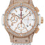 341.PE.230.RW.174 Hublot. The Hublot Big Bang 341.PE.230.RW.174 is a luxurious unisex timepiece that boasts an 18K rose gold case measuring 41mm in diameter, which is adorned with a total of 198 diamonds weighing approximately 1.12 carats. The watch also features a white dial with applied gold tone Arabic numerals and index hour markers, and a fixed 18K rose gold bezel set with 114 diamonds weighing around 1.18 carats. The scratch-resistant sapphire crystal protects the dial, while the white rubber strap with a stainless steel deployant clasp adds a sporty touch to the watch. The watch is powered by an automatic movement and features a chronograph and date display between 4 and 5 o'clock positions, as well as a power reserve of 42 hours. The Hublot Big Bang 341.PE.230.RW.174 is water-resistant up to 100 meters or 330 feet, which makes it suitable for recreational swimming and snorkeling, but not for scuba diving. Overall, this timepiece is a stunning combination of luxury, functionality, and durability, making it an excellent choice for those who appreciate high-quality watches.
