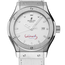 Preowned - 542.NE.2610.LR Hublot  This watch comes with 40 mm Stainless steel case. Fixed Stainless steel bezel is secured with 6 H-shaped titanium screws. White dial with silvery hour markers. Silvery skeleton hour hands. Central second hand. The date window is located at the 3 o'clock position. The watch performs following functions: hours, minutes, seconds, date. Self-winding mechanical movement. Sapphire crystal protects front side of the watch. White rubber strap with stainless steel buckle clasp. This model is water-resistant up to 50 m.