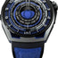 H02758-A HYT  The HYT Moonrunner Supernova Blue H02758-A is a watch that seamlessly marries innovation and design. This timepiece features a 52.3 * 48 mm titanium case, projecting a bold and modern aesthetic. The fixed bezel showcases technological sandblasted grey and blue coated titanium, complemented by black side grids with a blue background. The sandblasted crown, crafted in black and technological grey coated titanium, adds to the watch's functionality and aesthetic appeal. The domed sapphire crystal (box) is treated with an anti-reflective coating, enhancing the watch's clarity and sophistication. Unlike traditional wristwatches, this timepiece utilizes a special fluorescent solution that moves along a capillary tube instead of traditional hands.