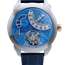 Discover the epitome of horological sophistication with the Jacob & Co. 150.510.2. This exceptional timepiece features a 43 mm Titanium case and a sleek Fixed Titanium bezel, exuding both strength and elegance. The striking blue skeleton dial is a visual marvel, showcasing a fascinating interplay of Arabic numerals and silvery skeleton hour hands.