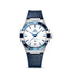 The dramatic and enduring design of the OMEGA Constellation is characterised by its famous half-moons, as well as the ''claws'' on the side of the case. This 41 mm stainless steel model features a polished blue ceramic bezel with Roman numerals in ''Grand Feu'' white enamel, a white ceramic dial and a date window at the 6 o'clock position. The hands, OMEGA logo, Constellation star and facetted indexes are all blued. Presented on a blue leather strap with rubber lining, this timepiece is driven by the OMEGA Co-Axial Master Chronometer Calibre 8900, visible through the domed scratch-resistant sapphire crystal. 5 bar (50 metres / 167 feet)