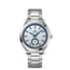 The Seamaster Aqua Terra is a superb tribute to OMEGA's rich maritime heritage. In this 41 mm model, the symmetrical case has been crafted from stainless steel, with a wave-edged design featured on the caseback. The brushed silvery-blue dial is distinguished by a horizontal ''teak'' pattern, along with a date window at 6H and an opaline Small Seconds subdial featuring a rhodium-plated ring. The design is further complemented by blued hands and indexes filled with white Super-LumiNova, as well as sandblasted minutes and seconds tracks on the dial and subdial. Presented on a polished and brushed bracelet, this timepiece is powered by the OMEGA Co-Axial Master Chronometer calibre 8916, certified at the industry's highest standard by the Swiss Federal Institute of Metrology (METAS). 15 bar (150 metres / 500 feet)