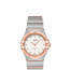 131.20.28.60.52.001 Omega The Omega Constellation Quartz 131.20.28.60.52.001 watch is similar to the previous model, but it features a crystal white silvery dial instead of a brown dial. Like the previous model, it has a 28mm stainless steel case with an 18K Sedna™ gold fixed bezel with engraved Roman numerals and a crown made of 18K Sedna™ gold. The watch also features diamond hour markers and 18K rose gold skeletonized hour hands. The watch functions with hours and minutes only and is powered by a quartz movement, specifically the Calibre 4061, with a battery life of 48 months. The Omega logo is located below the 12 o'clock position. The case thickness is 8.5mm and the case back is solid. The front of the watch is protected by a sapphire crystal. The watch comes with a stainless steel and 18K Sedna™ gold bracelet with a folding buckle. The water resistance of the watch is up to 30m, making it suitable for everyday wear but not suitable for swimming or diving. Overall, this watch combines luxury and modern technology to create an elegant and sophisticated timepiece that is perfect for daily wear.
