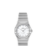 131.15.25.60.55.001 Omega The Omega Constellation Quartz 131.15.25.60.55.001 is another women's watch in the Constellation collection with a 25mm stainless steel case and a fixed bezel that is diamond-paved. The crown is also made of stainless steel. The white mother-of-pearl dial is adorned with diamond hour markers, and the hour hands are made of 18k white gold and are skeletonized. The watch performs basic timekeeping functions, displaying hours and minutes, and the Omega logo is located below the 12 o'clock position. Like the other two models, this watch is also powered by a quartz movement, specifically the Calibre 4061, which has a battery life of 48 months. The case thickness is 8.1mm, and the case back is solid. The front of the watch is protected by sapphire crystal, and the watch has a stainless steel bracelet with a folding buckle. The water resistance of the watch is up to 30 meters. Overall, the Omega Constellation Quartz 131.15.25.60.55.001 is a stunning timepiece that offers a luxurious and feminine touch with its diamond-paved bezel and diamond hour markers. The use of white mother-of-pearl dial adds to its elegance, and the 18k white gold skeletonized hour hands give it a refined finish. The watch's practical quartz movement and water resistance make it suitable for daily wear, while its classic design ensures that it will remain stylish and relevant for years to come.