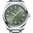 The bay green dial, fashioned from brass, is lacquered and sun-brushed from the centre. There is a date window at 6 o'clock and rhodium-plated hands and indexes filled with white Super-LumiNova. Central second hand. Grey inner bezel with minute scale.