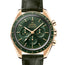 This watch has a sun-brushed green PVD "step" dial with applied OMEGA logo and three green sub-dials. Gold hour markers with luminous coating. Gold hour hands with luminous coating. Central second hand. This watch has three sub-dials chronograph : 60 seconds sub-dial at 9 o'clock, 30-minute sub-dial at 3 o'clock, 12-hour counter at 6 o'clock.