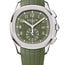 Discover unparalleled elegance with the Patek Philippe Aquanaut Chronograph 5968G-010, a masterpiece that seamlessly blends sophistication with athleticism. This luxurious men’s watch boasts a striking 42.2 mm 18K white gold case and a khaki green dial that features a unique gradient embossed Aquanaut pattern.