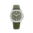 This Patek Philippe Aquanaut white gold “Jumbo” reasserts its young, dynamic style in a new khaki green design. It features a white gold case that measures 42.2mm. The dial is a khaki green color with gold applied numerals with luminescent coating. The strap is a matching khaki green made of rubber and it closes with the aquanaut fold-over clasp.