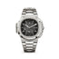 5990/1A-001 Patek Phillippe. The Patek Philippe Nautilus 5990/1A-001 is a luxury men's watch with a 40.5mm stainless steel case and a stainless steel fixed bezel. The screw-down crown ensures water resistance and protection of the watch. The black gradient dial features stick hour markers and hands with luminescent coating for easy readability in low-light conditions. The watch includes a date sub-dial located at the 12 o'clock position, a 60-second sub-dial located at the 6 o'clock position, and a dual time zone indication feature for easy tracking of multiple time zones. The local and home day/night indications are located at the 3 and 9 o'clock positions, respectively, adding to the watch's functionality. The watch comes with a stainless steel bracelet with a fold-over clasp for a secure and comfortable fit. The sapphire-crystal case back allows for a view of the intricate and high-quality automatic movement. The watch is powered by the Patek Philippe Calibre CH 28-520 C FUS movement, which provides precise timekeeping and reliable performance. The Patek Philippe Nautilus 5990/1A-001 is water-resistant up to 120 meters (400 feet), making it suitable for swimming, snorkeling, and other water activities, but not for diving. This 2021 release is a stunning and elegant addition to the Nautilus collection and is sure to impress with its combination of style and function.