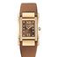 Preowned-4920R-001 Patek Philippe This watch comes with 25x30 mm 18K Rose Gold case. Fixed 18K Rose Gold bezel set with 34 diamonds. 18K Rose Gold crown with diamond cabochon. Brown dial. Rose gold tone Roman numerals and diamonds hour markers. Roman numerals appear at the 6 and 12 o’clock positions. Rose gold tone hour hands with luminous coating. The watch performs following functions: hours, minutes. Quartz movement is powered by a ?alibre E 15. Case back is solid. Sapphire crystal protects front side of the watch. Brown textil strap with pin buckle. This model is water-resistant up to 30 m.