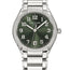 7300/1200A-011 Patek Philippe. The Patek Philippe Twenty 4 Series 7300/1200A-011 is a luxurious lady's watch with a 36mm stainless steel case and matching bracelet. The fixed bezel is adorned with 160 diamonds, totaling approximately 0.77 carats. The olive green sunburst dial is both elegant and functional, with luminous silver-tone hands and Arabic numeral hour markers. Minute markers can be found around the outer rim of the dial, and the watch features luminescent hands and markers. The watch is powered by the Patek Philippe calibre 324 S C automatic movement, which contains 29 jewels and is composed of 213 parts. The movement beats at 28,800 vibrations per hour and has a power reserve of approximately 45 hours. The date display can be found at the 6 o'clock position, and the scratch-resistant sapphire crystal protects the dial. The watch has a screw-down crown and a transparent case back. It has a round case shape with a diameter of 36mm and a thickness of 10.05mm. The fold-over clasp features a push-button release for added convenience. The watch is water-resistant up to 30 meters, or 100 feet, and it can display the date, hour, minute, and second. Overall, the Patek Philippe Twenty 4 Series 7300/1200A-011 is a beautiful and sophisticated timepiece that combines both style and functionality. Its elegant design and high-quality materials make it a great choice for those seeking a luxury watch that can be worn every day.