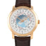 Preowned-86060/000R-9640 Vacheron Constantin The Vacheron Constantin Traditionnelle World Time 86060/000G-8985 is a fusion of horological sophistication and timeless elegance. This men's watch boasts a 42.5mm case expertly crafted from 18kt rose gold, radiating an aura of refined luxury that captures attention. The fixed bezel enhances its aesthetic refinement. Enveloped in captivating design, this timepiece features a white dial adorned with rose gold tone hands and Arabic numeral hour markers, further enriched by minute markers around the outer rim. This combination of elements creates a harmonious blend of readability and sophistication. The watch's elegance extends to its brown alligator leather strap, seamlessly complementing its overall aesthetic. The deployment clasp ensures both security and comfort, reflecting Vacheron Constantin's dedication to luxury and meticulous craftsmanship. At the heart of this extraordinary timepiece beats an automatic movement, the Vacheron Constantin Calibre 2460 WT, a testament to the brand's commitment to precision and performance. With a power reserve of 40 hours, the movement ensures enduring accuracy and reliability. Beyond its technical brilliance, the watch performs an array of functions, including hour, minute, second, day-night indicator, GMT, and power reserve, creating an engaging and comprehensive experience for the discerning wearer. With water resistance up to 30 meters (100 feet), the watch showcases its adaptability, transitioning seamlessly between various environments, from formal occasions to everyday moments. The Vacheron Constantin Traditionnelle World Time 86060/000G-8985 stands as a tribute to the brand's legacy and mastery. Its intricate complications, coupled with its timeless design, underscore Vacheron Constantin's dedication to horological excellence and enduring luxury. This watch encapsulates the spirit of precision, craftsmanship, and the distinguished elegance that defines Vacheron Constantin's creations.