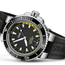 Known affectionately as ‘the watch with a hole’, the Aquis Depth Gauge uses the scientific principles of the Boyle-Mariotte Law to create a gauge that clearly measures depth during a dive. The patented system works by allowing water through a hole cutin to the sapphire crystal at 12 o’clock and into a channel milled around the outer edge of the crystal. This creates a watermark that corresponds to a gauge clearly indicated in yellow on the dial.