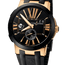 Preowned-246-00-3/42 Ulysse Nardin The Ulysse Nardin Executive Dual Time 246-00-3/42 is a men's watch that exudes a blend of luxury, functionality, and sophistication. The watch showcases an 18K rose gold case, a material associated with luxury and refinement. It is paired with a black rubber strap, adding a modern and sporty touch to its design. The fixed black ceramic bezel not only enhances the watch's aesthetics but also provides durability and protection. The black dial offers a striking contrast with luminous gold hands and index hour markers. Roman numerals are elegantly placed at the 3, 6, 9, and 12 o'clock positions. Minute markers encircle an inner ring, contributing to precision and readability. The hands and markers are luminescent, ensuring that the time is visible even in low light conditions. At the 2 o'clock position, a date display offers practicality, while a small seconds sub-dial is located at the 6 o'clock position, adding a touch of symmetry to the dial. One of the key features of this watch is the dual time display, which is located at the 9 o'clock position. This function allows you to keep track of time in a different time zone, making it a perfect companion for travelers or those who frequently communicate across time zones. The watch is powered by an automatic movement with a 42-hour power reserve, reflecting Ulysse Nardin's commitment to precision and innovation. A scratch-resistant sapphire crystal protects the dial, ensuring both clarity and durability. The screw-down crown contributes to the watch's water resistance and overall robustness. The transparent case back allows you to admire the intricate movements of the watch, adding a touch of fascination for watch enthusiasts. With a case diameter of 43mm and a thickness of 12.60mm, the round case shape provides a balanced and comfortable fit. The band width is 22mm, and the deployment clasp ensures a secure and stylish closure. The watch offers a water resistance of up to 100 meters (330 feet), making it suitable for various activities, including swimming and snorkeling. The Ulysse Nardin Executive Dual Time 246-00-3/42 is more than just a watch; it's a work of art, a statement of luxury, functionality, and precision. It represents your appreciation for craftsmanship and the beauty of both aesthetics and functionality. This watch is a symbol of luxury and charm, an excellent companion for those who appreciate both style and practicality in their timepieces.
