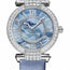 384242-1005 Chopard The Chopard Imperiale 384242-1005 is a true masterpiece of watchmaking that will take your breath away. Every detail of this luxury watch has been meticulously crafted to create a timepiece that is both visually stunning and highly accurate. The round case, measuring 36 mm, is made from 18K White Gold and Diamonds, while the Diamond-set bezel adds an extra element of sophistication. The blue mother-of-pearl dial, featuring finely curved hands and Roman numerals, is simply mesmerizing, exuding elegance and refinement. The crown, lugs, bezel, and hour markers are all adorned with Diamonds, adding a touch of glamour and luxury that is sure to turn heads. The glossy blue brushed fabric strap, adorned with an 18K White Gold pin buckle, provides a comfortable and stylish fit. With water resistance of up to 50 meters/165 feet, this watch is as practical as it is beautiful. This self-winding Ladies watch is undoubtedly one of the most magnificent timepieces ever created and is a must-have for any watch enthusiast who appreciates bold design, superior craftsmanship, and sophistication. The Chopard Imperiale 384242-1005 is a work of art that will catch the eye and steal the heart of anyone lucky enough to wear it.