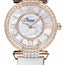 384242-5005 Chopard The Chopard Imperiale 384242-5005 is a ladies watch, a true masterpiece that pushes the boundaries of luxury and technology. This self-winding watch boasts a 36 mm round case made from 18K Rose Gold and Diamonds, with a Diamond-set bezel that is sure to catch your eye. The mother-of-pearl dial, with finely curved hands and Roman numerals, is nothing short of stunning. And let's not forget the crown, lugs, bezel, and hour markers - all adorned with Diamonds to create a truly dazzling design. The glossy, white brushed fabric strap, with an 18K Rose Gold pin buckle, provides both comfort and style. With water resistance up to 50 meters/165 feet, this watch is perfect for all your adventures.