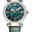 388532-6008 Chopard The Chopard Imperiale 388532-6008 is a stunning ladies' watch that blends classic elegance with modern technology. Its round case, measuring 36 mm, is crafted from 18K Rose Gold and stainless steel, while the diamond-set bezel adds a touch of luxury. The rich green dial, featuring finely curved hands and Roman numerals, is truly magnificent, and the crown is expertly adorned with Green Tourmalines to catch the eye. This timepiece is also equipped with a convenient date display at the 3 o'clock position. The glossy green alligator leather strap with pin buckle provides ultimate comfort and completes the watch's sophisticated look. Additionally, this watch is water-resistant up to 50 meters/165 feet, adding to its practicality as well as its beauty. As a must-have for watch enthusiasts, this Chopard Imperiale displays expert craftsmanship and digital precision.