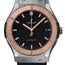 511.NO.1181.RX Hublot. The Hublot Classic Fusion Automatic 511.NO.1181.RX is a stunning watch with a 45mm titanium case and 18K king gold fixed bezel, creating a bold and elegant look. The black dial is complemented by gold-tone hands and index hour markers, making it easy to read time even in low-light conditions. The watch is protected by a scratch-resistant anti-glare sapphire crystal, ensuring durability and clarity. The watch features a date window fixed at the 3 o'clock position, making it convenient to keep track of the date. The rubber strap is comfortable to wear and secured by a double-locking fold-over clasp, ensuring the watch stays securely on the wrist. Powered by an automatic movement with a 42-hour power reserve, this watch is reliable and precise. The watch is also water-resistant up to 100m/330ft, making it suitable for swimming and snorkeling, and even some water sports like surfing and water skiing. Overall, the Hublot Classic Fusion Automatic 511.NO.1181.RX is a stylish and functional watch suitable for any occasion. The combination of titanium and 18K king gold creates a unique and bold look, while the automatic movement and water resistance make it a practical timepiece for everyday wear.