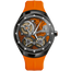 Orange sporty black integrated rubber strap with double-press deployant closure.