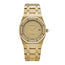 This vintage Audemars Piguet Royal Oak features a 30mm yellow gold case, champagne dial with diamond markers and diamond bezel. The watch has an automatic movement and comes on a yellow gold bracelet with a fold-over clasp.