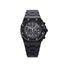 For the very first time, Audemars Piguet introduces a black ceramic case and bracelet to the collection. The black dial features the 'Petite Tapisserie' pattern, black counters and external zone, white gold applied hour-markers and Royal Oak hands with luminescent coating, and a black inner bezel. The watch comes on a black ceramic bracelet with titanium AP folding clasp.