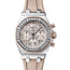 Preowned-26048SK.ZZ.D082CA.01 Audemars Piguet This watch has a 37 mm 18K White Gold case. The fixed 18k white gold bezel is secured with 8 screws, set with 32 ~1.25ct diamonds. Soft pink guilloche dial. Luminous hour markers. Minute markers around the outer rim. Luminous hour hands. Central second hand. Date window located between the 4 and 5 o'clock positions. This watch has three sub-dials chronograph : 60 seconds sub-dial at 6 o'clock, 30-minute sub-dial at 3 o'clock, 12-hour counter at 9 o'clock. The watch performs following functions: hours, minutes, seconds, date, chronograph. Self-winding mechanical movement is powered by a ?alibre AP 2385. Power reserve approximately 40 hours. Case Thickness - 12 mm. Case back is solid. Sapphire crystal protects front side of the watch. Rubber strap with folding clasp buckle. This model is water-resistant up to 50 m.
