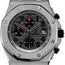 Prwowned - 26170TI.OO.1000TI.01Audemars Piguet. This Man's Watch has a 42mm (54.00 mm – including fasteners) Titanium case, with an octagonal titanium bezel secured to the case and caseback with 8 through-gold screws. The anthracite grey dial is decorated with the "Mega Tapisserie" pattern and features skeletonized silver hour hands with luminescent coating, and applied white gold Arabic numerals coated with an exclusive black luminescent compound. A date display is located at the 3 o'clock position. The watch is equipped with three sub-dials for a chronograph, with 60 seconds at 12 o'clock, 30-minute at 9 o'clock, and 12-hour counters at 6 o'clock. The case back is solid and the watch is powered by a self-winding mechanical movement, Calibre Audemars Piguet AP 3126/3840, with a power reserve of approximately 55 hours. The front side of the watch is protected by a sapphire crystal, and the case thickness is 16 mm. The watch performs the functions of hours, minutes, small seconds, date, and chronograph. The watch comes with a titanium bracelet and folding clasp and is water-resistant up to 100 m.