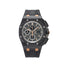 This Royal Oak Offshore 'Pride of Germany' is a limited edition of 300 pieces. The 44mm black ceramic case surround a black dial featuring the 'Mega Tapisserie' pattern, three sub-dials, and gold-tone hands and hour markers. This watch comes on a black rubber strap with AP pin buckle.