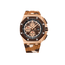 This limited edition Royal Oak Offshore style is designed with a 44mm 18-carat rose gold case and brown ceramic bezel. In the center inlays a brown 'Mega Tapisserie' dial with luminous hands and hour markers featuring rose gold counters and black accents. This watch comes on a tan Camouflage rubber bracelet with a rose gold pin buckle.