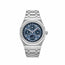 This Audemars Piguet Royal Oak Perpetual Calendar is crafted in a stainless steel case measuring 41mm. The dial offers contrasting blue tones with subdials and inner bezel adorning the iconic “Night Blue, Cloud 50” hue of the original Royal Oak. The watch comes on a stainless steel bracelet with AP folding clasp.