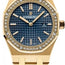 Discover unparalleled sophistication with the Preowned-67651BA.ZZ.1261BA.02 Audemars Piguet, a masterpiece of haute horology. This watch comes with 33 mm 18K Yellow Gold case. The fixed bezel in 18k yellow gold, set with diamonds, is secured with 8 titanium H-shaped screws. Blue dial with exclusive "Grande Tapisserie" pattern, decorated with applied hour markers with luminous coating all around. Polished rose gold-tone hour hands with luminescent coating. The date window is located at the 3 o'clock position. The watch performs following functions: hours, minutes, date. Quartz movement. Case back is solid. Sapphire crystal protects front side of the watch. 18K Yellow Gold bracelet with folding clasp buckle. This model is water-resistant up to 50 m. Don’t miss your chance to own this exquisite timepiece. Click 'Order Now' to make it yours, or give us a call to discuss this stunning watch.